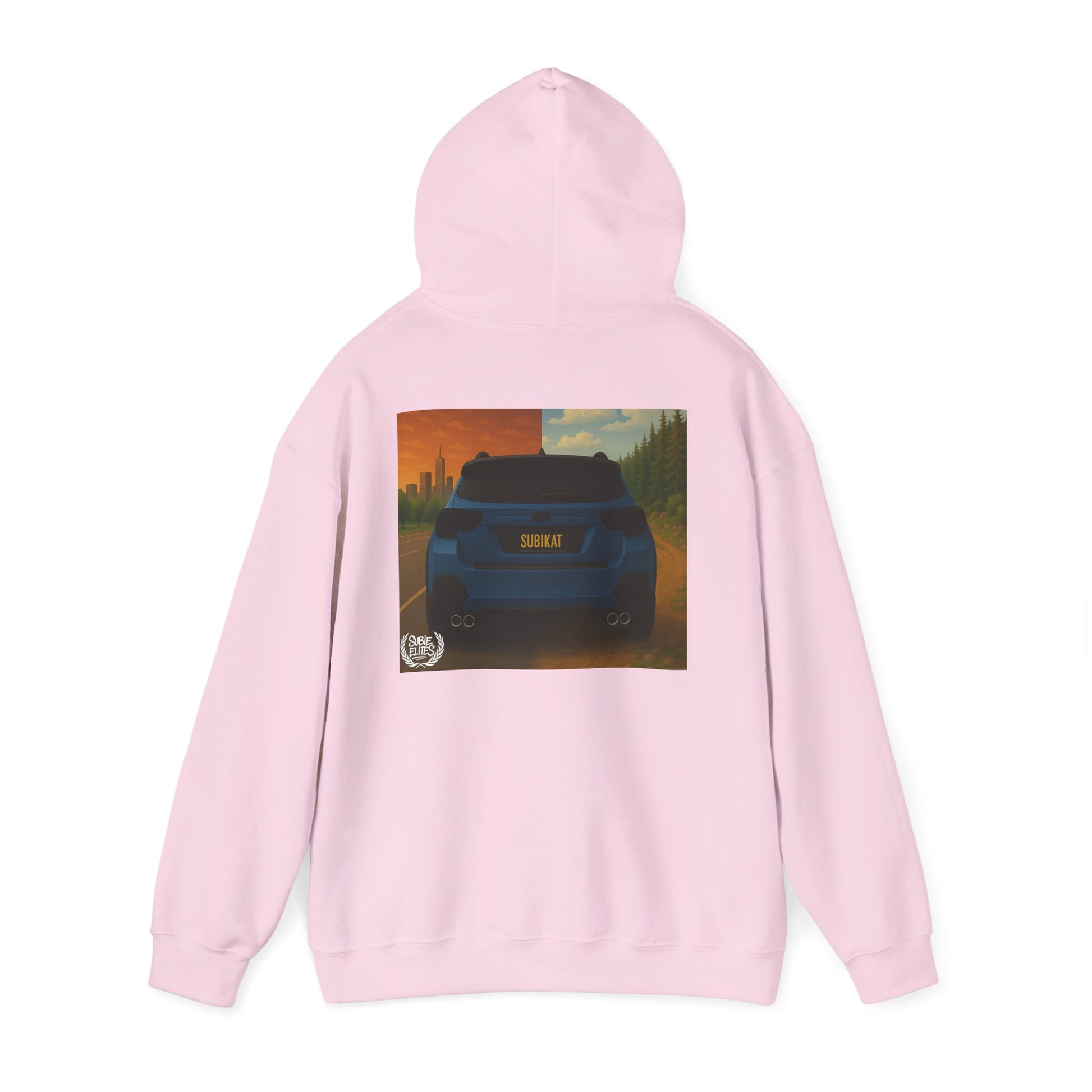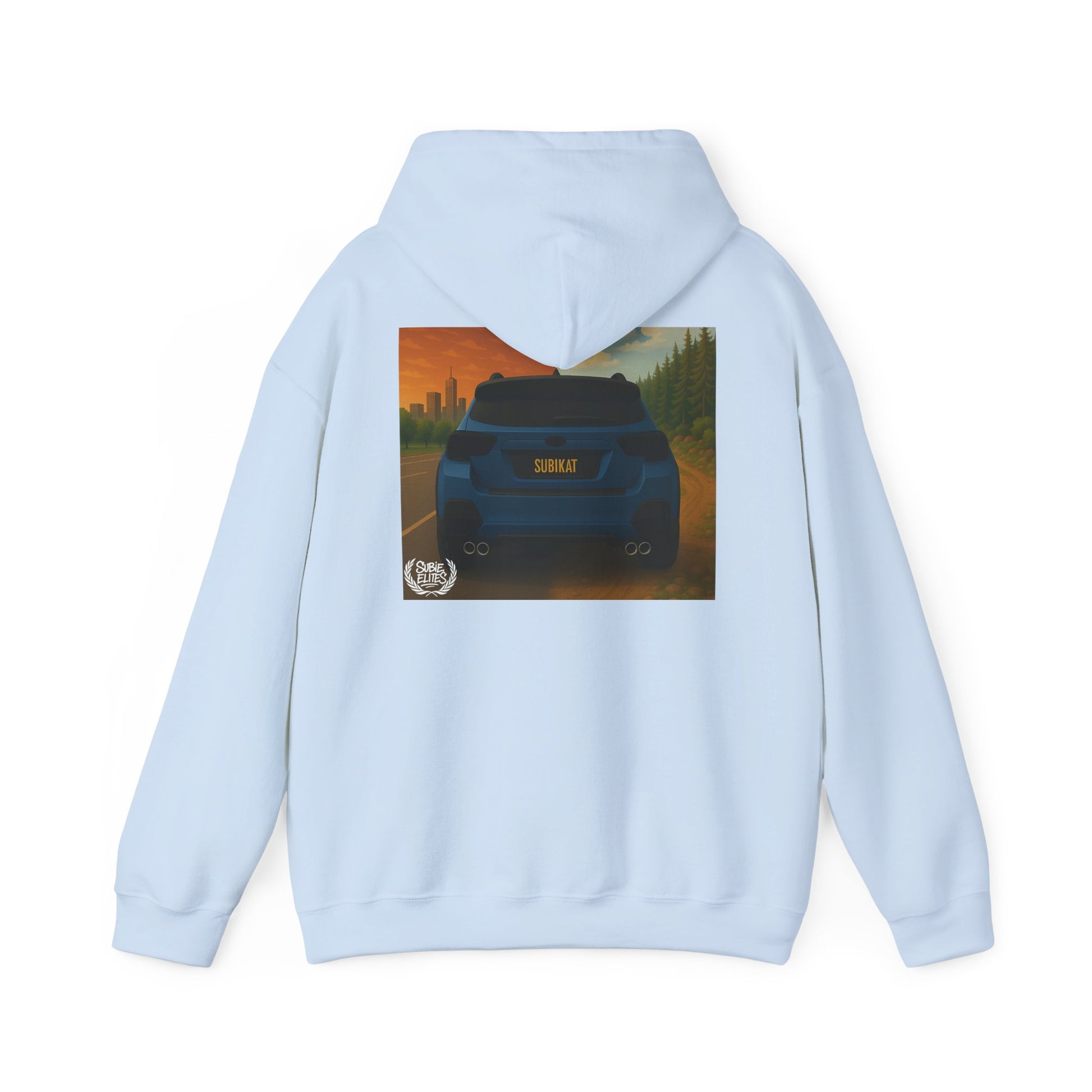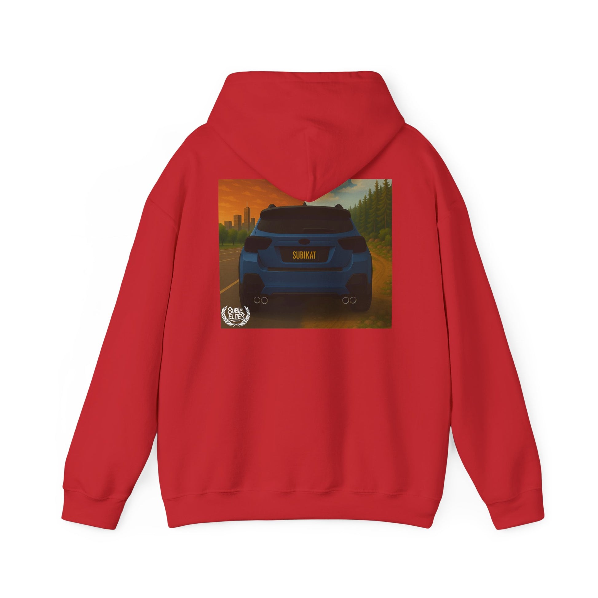 This comfortable, mid-weight hooded sweatshirt pairs everyday warmth with automotive attitude. Soft cotton-poly blend fabric carries a bold, full-color back print of a compact car framed by a warm, cinematic cityscape — details that pop without overwhelming. A small, embroidered crest on the left chest balances the design, giving the hoodie a lived-in, street-ready look. Long sleeves, a double-lined hood with matching drawcord, and a roomy kangaroo pocket make it a go-to layer for drives at dawn, casual meetups, or low-key garage hangs. It’s built to last and feels like the hoodie you reach for when you want both comfort and personality.