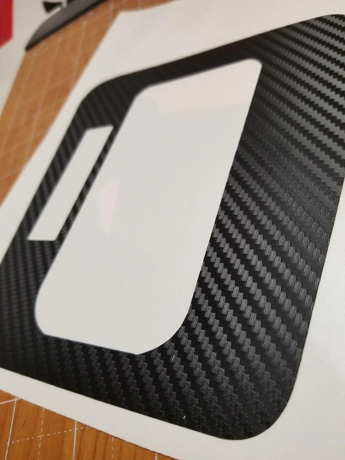This gives your vehicle a unique, textured look. Cover up the plain trim. Just remove some of the existing trim to lay this on the shifter frame. Clip back in all the surrounding trim and you have yourself a new look!