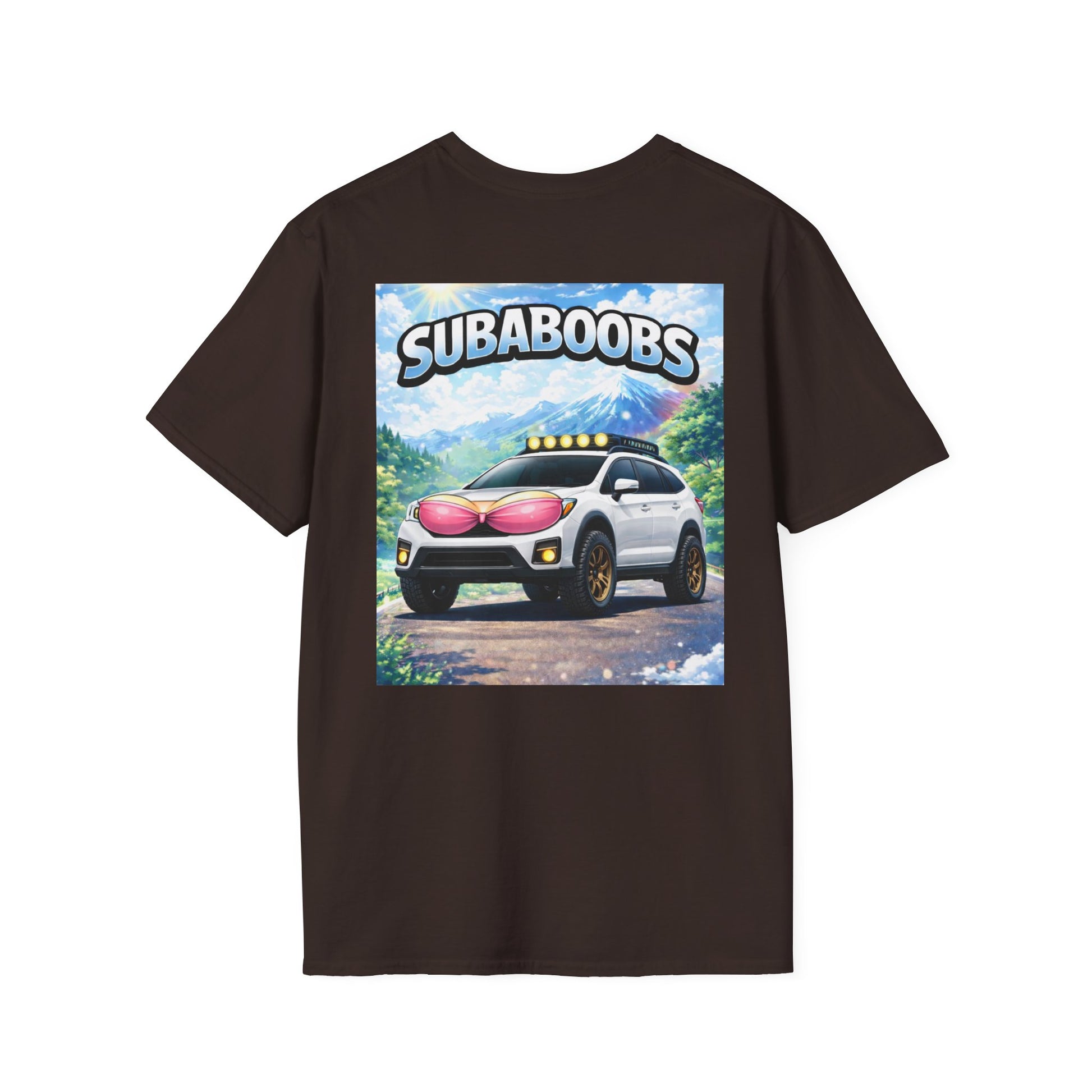 This shirt brings playful car-culture energy into everyday wear. A soft, lightweight cotton tee with a bold back graphic of a lifted Subaru wearing pink accents and a cheeky “SUBABOOBS” headline — it reads like a sticker you’d slap on your trunk after a weekend meet. The chest carries a small, embroidered-style “SUBIE ELITES” mark for a subtle nod to crew affinity. It sits naturally in casual rotations: wrenching in the driveway, cruising to a meet, or coffee runs where you want a wink without shouting. The fabric drapes cleanly, the collar keeps its shape, and the tag is tear-away for comfort — built to feel lived-in from the first wear.